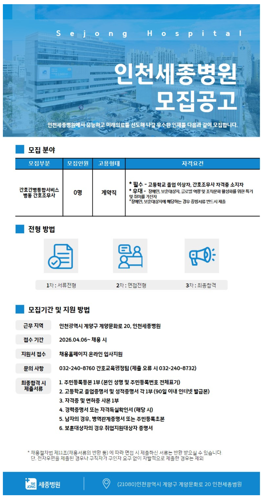 [ÀÎõ¼¼Á¾º´¿ø] °£È£°£º´ÅëÇÕ¼ºñ½º º´µ¿ °£È£Á¶¹«»ç ä¿ë(°è¾àÁ÷)
